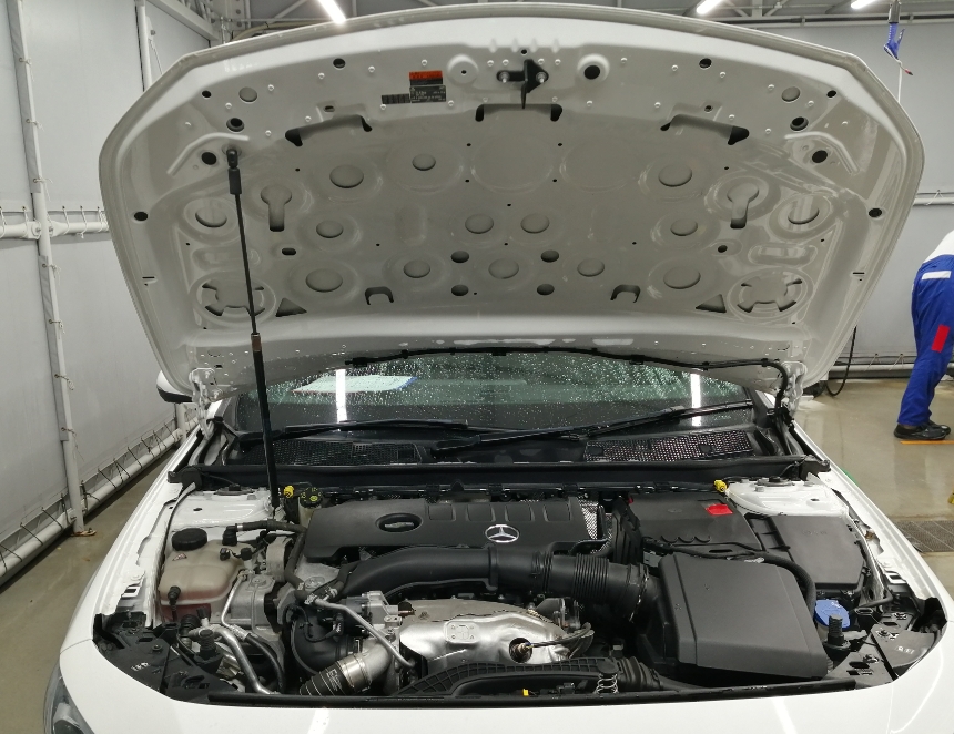 ちょっと驚いたのは、ボンネットの内側に吸音材が貼られていないこと。(^^;