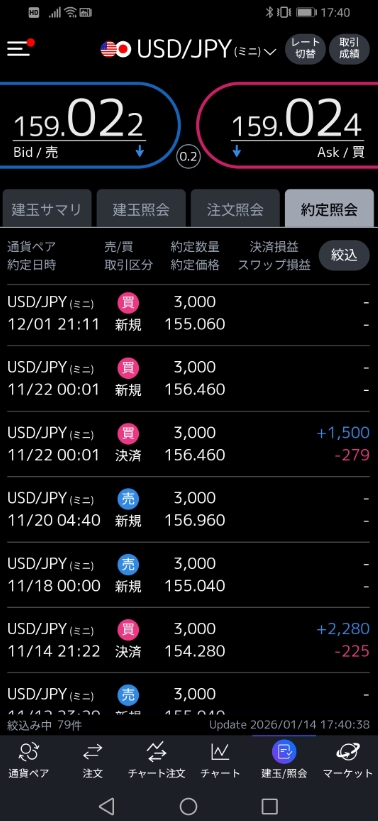 上記の、利益確定実績の一部を見ても分かるように、安全策を取っているがゆえに勝負できるタイミングが限られており、そう頻繁に稼げるわけではない。(-_-)